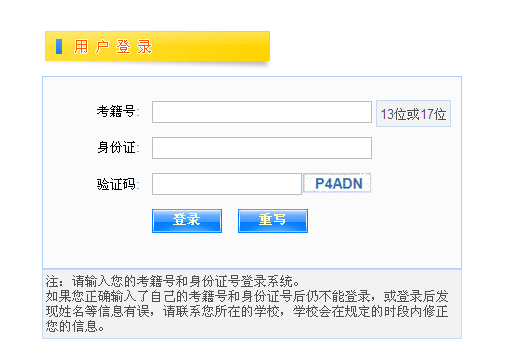 注:请输入您的考籍号和身份证号登录系统。